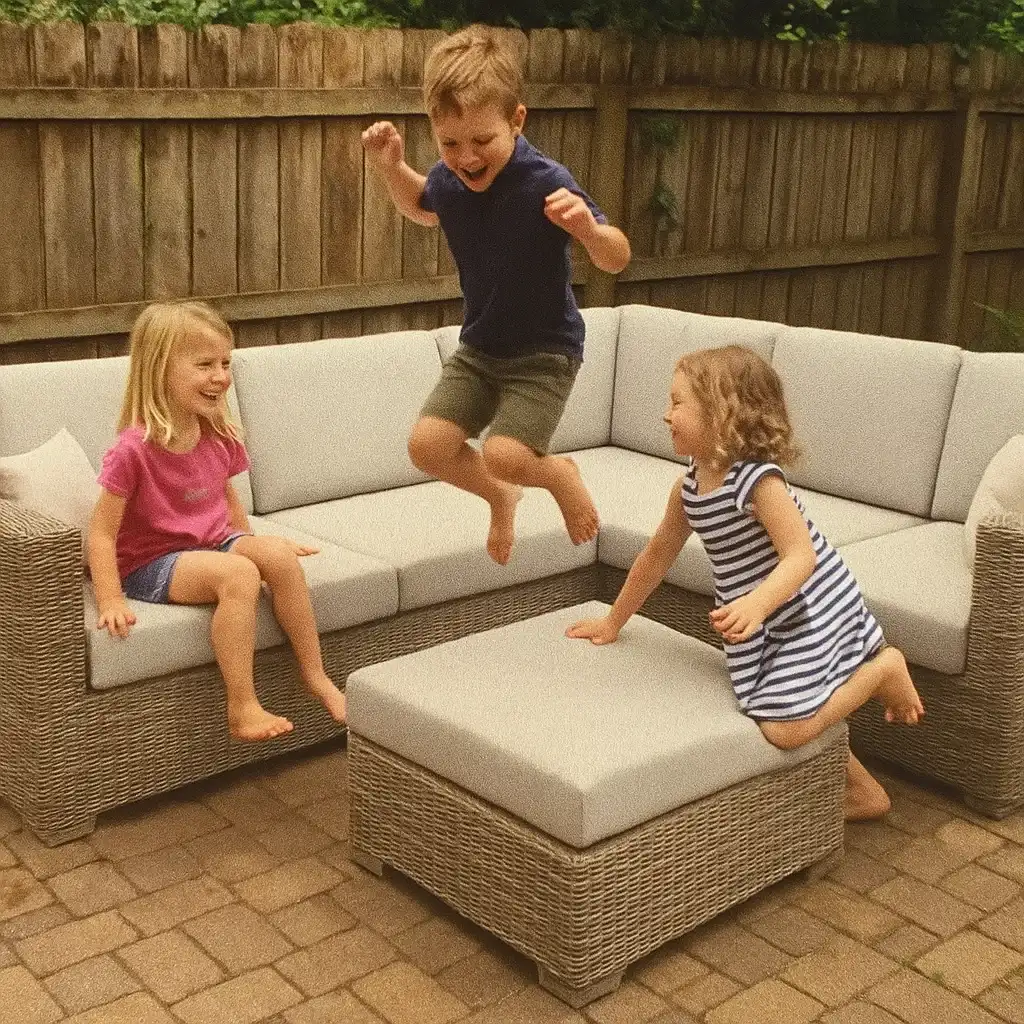 “With young kids, we hesitated on quality outdoor furniture. This sectional's PalaisHomes fabric changed everything—popsicle drips, sunscreen smears, mud—all wipe right off. No more stress about messes.”​